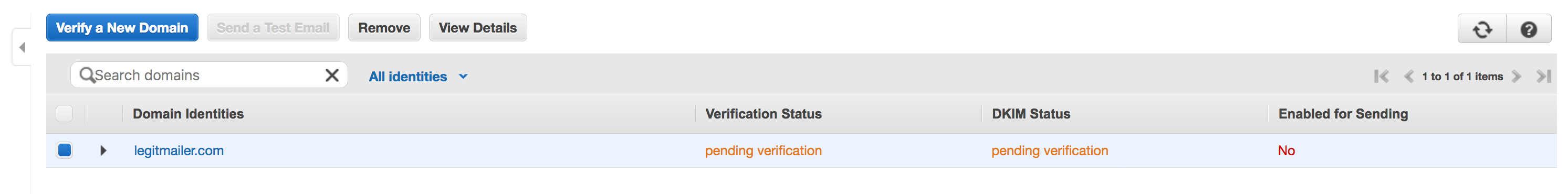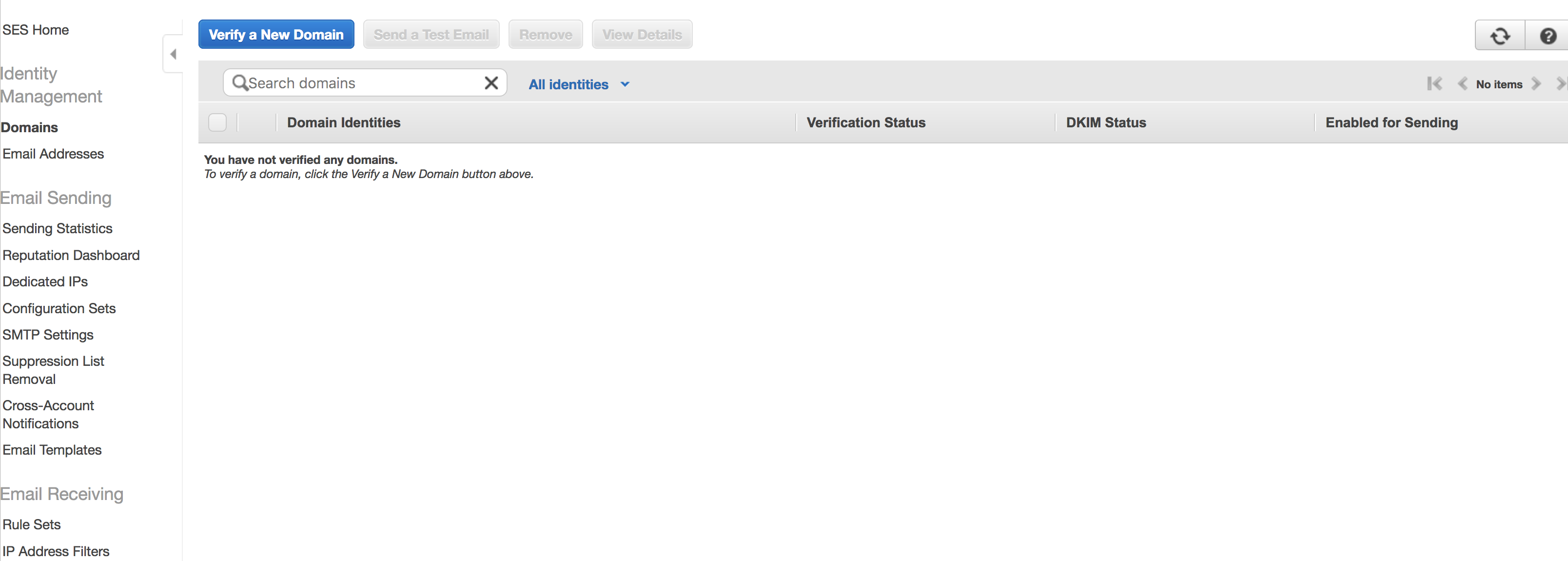 Go to Services -> Customer Engagement -> Simple Email Service -> Domains You will see you are ready to send emails.